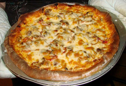 Note: for a thicker crust, let the dough rise on the pan covered with a clean tea towel for about 20 minutes before topping with sauce and ingredients.