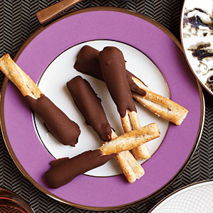 Make-ahead tip: Dip the pretzels, and store in the fridge on a parchment-lined tray up to five days ahead. Set out shortly before serving, but not too far ahead, as the chocolate may melt