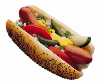 Preheat the fryer. Fill a stock pot 3/4 of the way full with water and bring to a boil. Add the hot dogs, reduce the heat to a simmer and cover. Cook until the hot dogs are plump, about 6 to 8 minutes. Fry the potatoes until golden brown, about 4 to 6 minutes, stirring occasionally for even browning. Remove and drain on paper towels. Season with salt and pepper. Place the hot dogs in the buns. Start topping the hot dogs with 2 tablespoons of each: onions, tomatoes, mustard and relish. Top with sport peppers to taste and sprinkle a little celery salt on top. Place each hot dog in the center of a piece of deli wrap. Place the fries next to the hot dog. Wrap the dog and the fries up tightly and serve.