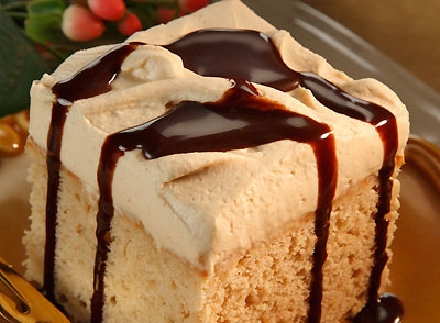 Variation: Cake may be baked in greased and flour 13x9x2-inch baking pan. Bake 30 to 35 minutes or until wooden pick inserted in center of cake comes out clean. Cool completely in pan on wire rack. Frost with 1/2 recipe PEANUT BUTTER WHIPPED CREAM FROSTING.