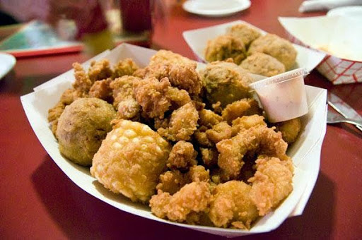 On heated plate put corn cakes in middle. Put cooked alligator on corn cakes and ladle 3 oz sauce with sausage over all. Sprinkle with sliced green onions for garnish.