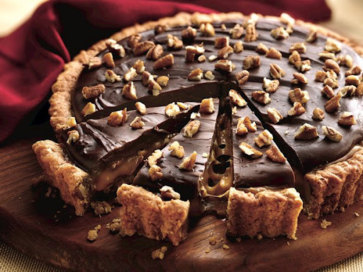 Heat oven to 350°F. In large bowl, stir cookie mix, butter, water and egg until soft dough forms. Stir in 1 cup pecans. Press dough in bottom and up sides of ungreased 9-inch tart pan with removable bottom.
