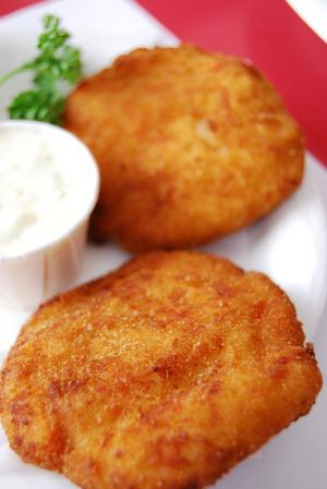 Fry crab cakes for about 3 to 4 minutes per side or until golden brown on both sides. Do not crowd pan. Fry in several batches, if necessary. Drain on paper towel.