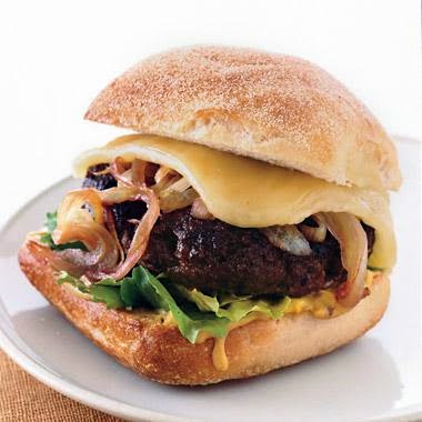 Bison Burgers with Cabernet Onions and Wisconsin Cheddar