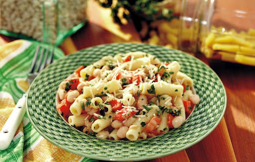 Cook pasta using package directions; drain well. Add to bean mixture and toss to mix. Serve immediately.