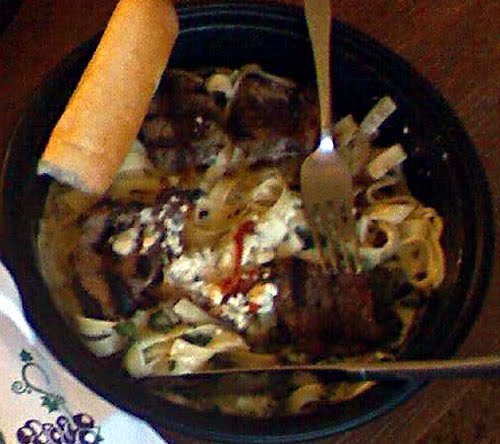 Melt butter and crab meat, lightly brown add remaining ingrediants. remove and top steak