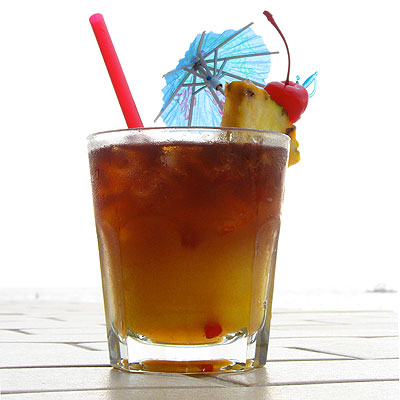 Shake all the liquid ingredients together vigorously with cracked ice. Strain into an ice-filled Collins glass. Garnish as desired.
