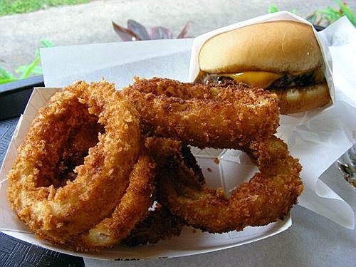Separate the onion slices into rings, and set aside. In a small bowl, stir together the flour, baking powder and salt.