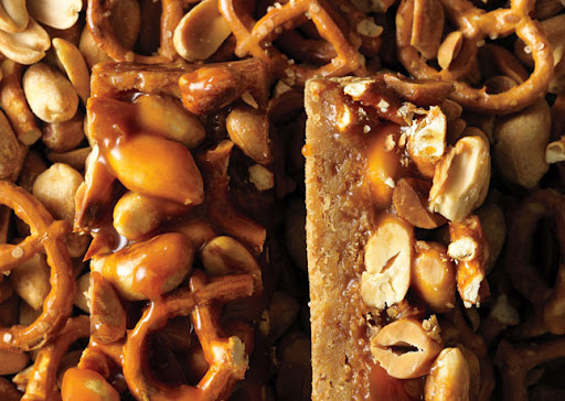 Butterscotch Blondie Bars with Peanut-Pretzel Caramel