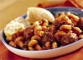 In 10-inch skillet, heat water and pasta sauce to boiling. Stir in macaroni and meatballs. Return to boiling.
