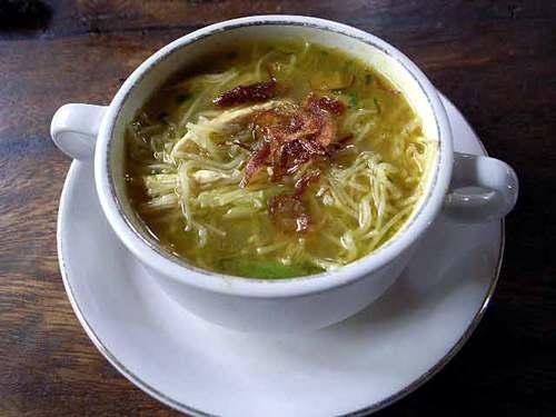 This particular dish is best eaten with steamed rice, so arrange in layers in the individual soup bowl, a cup of steam rice, a tablespoon of chicken, vermicelli, scallions, egg slices, a few drops of sweet soy sauce and hot chili sauce. Then pour a very hot chicken broth/soup and squeeze a slice of lemon and top with the crispy fried shallots.
