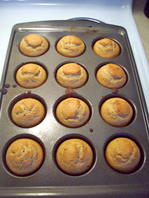 Important: The paper liners don't work well when baking with a base that does not include flour, they always seem to stick to the paper. I sprayed the muffin tin with non-stick cooking spray or you can use foil cupcake liners or a silicone muffin pan.