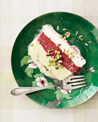 Unmold the terrine and transfer to a platter. Serve the terrine in slices and sprinkle with the pistachios.