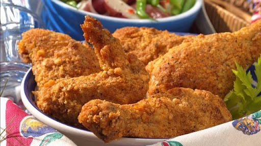 2. Heat oven to 425°F. Spray 15x10x1-inch pan with cooking spray. In shallow dish, mix breading ingredients. Remove chicken pieces one at a time from buttermilk mixture. Dip chicken in breading, turning to coat completely; shake off excess. Place chicken, bone side down, in pan. Lightly spray top of chicken with cooking spray.