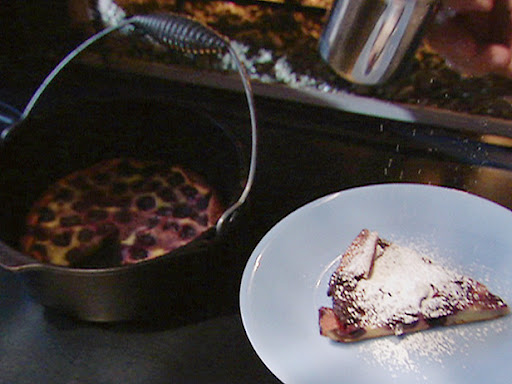 In a mixing bowl, whisk together the eggs and sugar until frothy and lightened in color. Add the milk, vanilla and flour and whisk to combine. Pour the batter over the cherries.