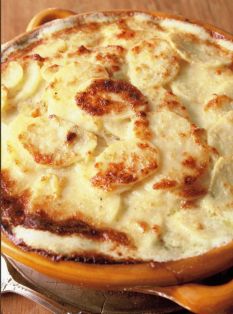Pour the potatoes into the baking dish. Press down to smooth the potatoes. Combine the remaining 2 tablespoons of cream and 1/2 cup of Gruyère and sprinkle on the top. Bake for 1 1/2 hours, until the potatoes are very tender and the top is browned and bubbly. Allow to set for 10 minutes and serve.