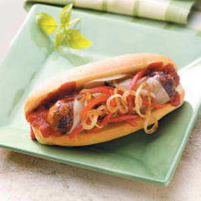 Sue Hoyt of Portland, Oregon shares this traditional favorite that dresses up Italian sausage with onion, sweet red pepper and pizza sauce. It’s sure to fill you up!