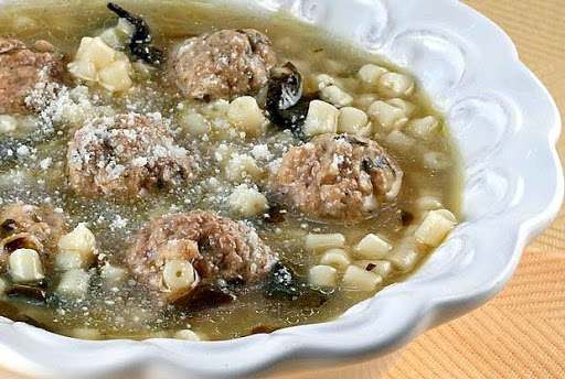 • Combine the ingredients above. Form small 1/2 inch balls. Drop into boiling salted water. Simmer for 10 minutes, remove with a straining spoon, place on paper towels to drain briefly, then refrigerate