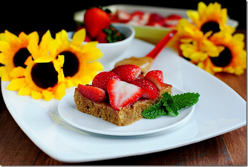 3. Cool completely, then spread strawberry jam on top and top with strawberry halves. Cut into bars and serve. Store covered in the refrigerator.