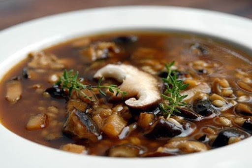 * Stir in broth, softened mushrooms, strained liquid, and 2 cups cold water. Bring to a boil. Reduce to low heat and simmer for 10 minutes. Stir in cooked barley and cook for an additional 10 minutes.