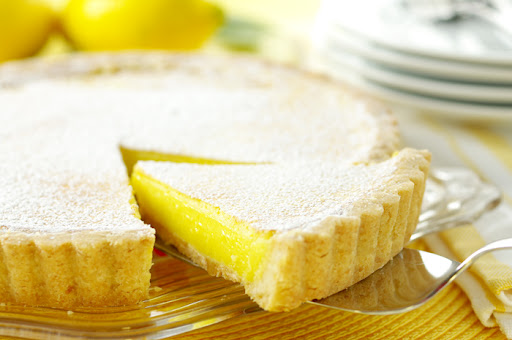 After prebaking the crust, look for any cracks that the filling could seep through. Make a paste with about 1 teaspoon flour and 1/2 teaspoon of water, and smear it over the cracks with your fingers to seal them. This recipe uses approximately 4 lemons. Serves 10.