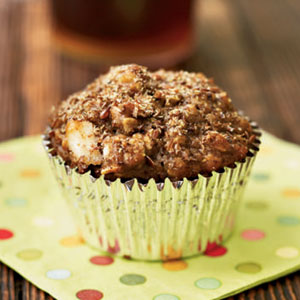 Lightly spoon flours into dry measuring cups, and level with a knife. Combine flours and next 5 ingredients (through salt) in a large bowl; stir with a whisk. Make a well in center of mixture. Combine yogurt, banana, and egg; add to flour mixture, stirring just until moist. Fold in dates, walnuts, and pineapple. Spoon batter into prepared muffin cups. Sprinkle evenly with flaxseed. Bake at 350° for 20 minutes or until muffins spring back when touched lightly in center. Remove muffins from pans immediately; cool on a wire rack.