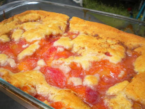 This is real easy to make which is great - you can whip it together after dinner and have it warm for dessert with iced cream or whipped cream. However, the batter (which rises to the top very nicely!) was not as tasty as it is in some of the other cobbler recipes.