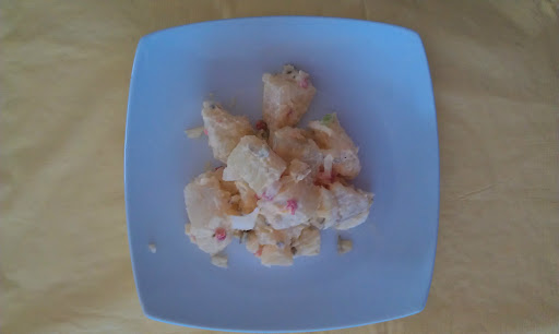Small Bowl Whisk Vinegar, Poupon & Mayonnaise - Add to Potato Mix.