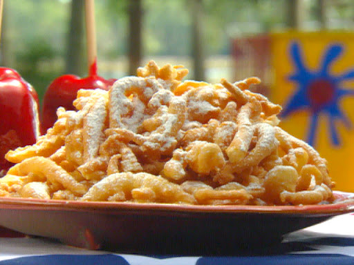 Preheat 1 inch of oil to 360F. In a large bowl, combine the wet ingredients, and whisk together. In a medium bowl, sift together the dry ingredients. Fold the dry ingredients into the wet ingredients, mixing until completely smooth. Scrape this mixture into a funnel or large pastry bag. Very carefully squeeze mixture into the hot oil, creating a "cake" of scribbles. Once it is golden brown and set on the first side, carefully flip the cake over, until the second side is golden and crisp. Drain on a paper towel lined plate. Repeat with remaining batter. Sprinkle with desired toppings, while hot.
