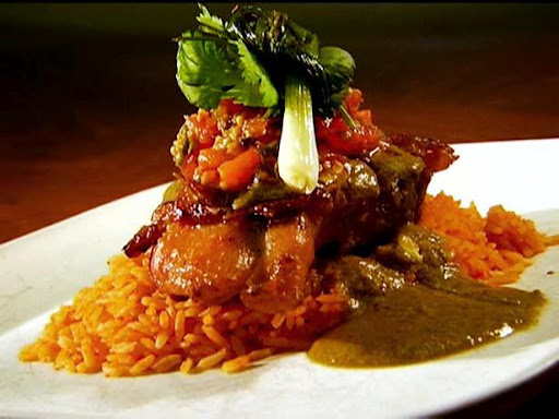 Arrange grilled chicken over a bed of your favorite rice and spoon sauce over all. Garnish with cilantro leaves, grilled scallions, and Pickled Tomato Salsa. Serve immediately.