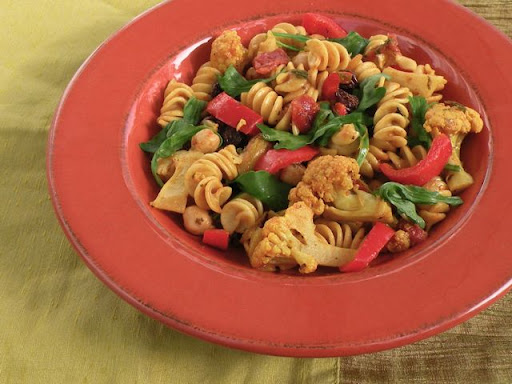 Curried Pasta with Cauliflower and Chickpeas
