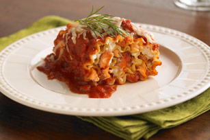 PLACE, seam-sides down, in greased 13x9-inch baking pan; top with sauce and mozzarella cheese. Cover with foil.