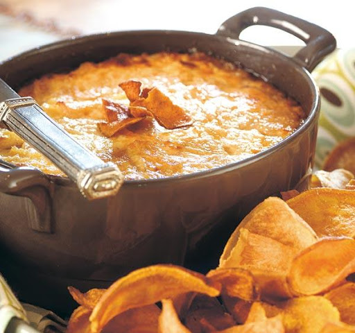 Melt butter in a large skillet over medium heat; add sliced onions. Cook, stirring often, 30 to 40 minutes or until onions are caramel colored. Combine onions, cheeses and mayonnaise, stirring well. Spoon dip into a lightly greased 1-1/2 to 2 quart casserole dish. Bake, uncovered, at 375 degrees for 30 minutes or until golden and bubbly. Serve with sweet potato chips.