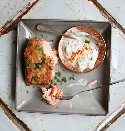 3. Heat oven to 500. Uncover salmon and bake until fish is crisp, lightly charred, and cooked through, 2025 minutes. Using a large metal spatula, transfer salmon to a serving platter and serve hot with the raita sauce.