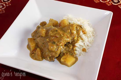 Add tomatoes, cilantro, water, coconut milk and adjust salt to taste. Mix all ingredients and cover pan, simmer on low until chicken is cooked through, about 20 minutes. Add potatoes and more water if neccesary and simmer, covered an additional 5-10 minutes.
