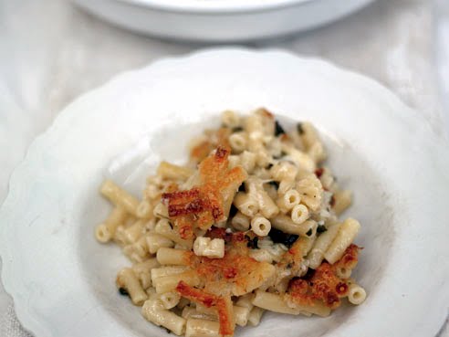 Preheat your oven to 200ºC/400ºF/gas 6. Cook the macaroni in a pan of salted boiling water 2 minutes short of the timing on the packet instructions, then drain in a colander and reserve a little of the cooking water. Heat the butter in a large heavy-based frying pan. When it starts to foam, add the marjoram or oregano and fry for a minute until it starts to crisp up, then turn off the heat. Add your cooked pasta to the marjoram or oregano butter, along with a couple of spoonfuls of the reserved cooking water and the Parmesan, fontina or taleggio and mascarpone. Return to a medium heat and toss and stir around until most of the cheese has melted and you have a lovely gooey sauce – you may need to add a little more of the reserved cooking water. Season to taste, then tip it all into an earthenware dish. Grate over the nutmeg, tear over the mozzarella and sprinkle over the extra Parmesan. Bake the macaroni cheese in the preheated oven for about 10 minutes, finishing up with a quick whack under the grill, until golden brown and crispy on top.