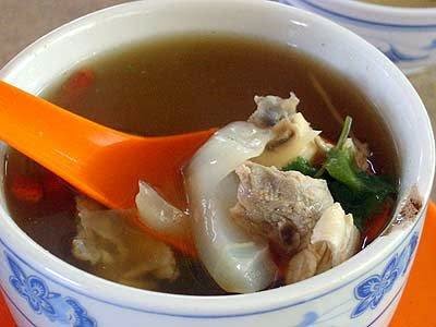 Mix cornstarch with remaining water and blend until smooth. Add to soup and cook 15 minutes, stirring, until stock is thickened.