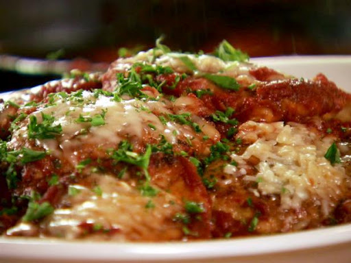 Carefully lay the chicken breasts on top of the sauce and completely cover them in the grated Parmesan. Place the lid on the skillet and reduce the heat to low. Allow to simmer until the cheese is melted and the chicken is thoroughly heated. Add more cheese to taste.
