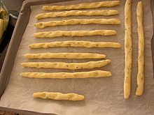 These breadsticks are generally pencil-sized sticks of crisp, dry bread originating in Italy
