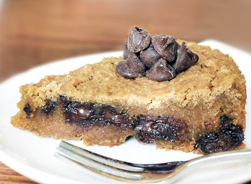 Blend everything (except the chips) very well in a good food processor (not a blender). Mix in chips, and pour into an oiled pan (I used a 10-inch springform pan, but you can use a smaller pan if you want a really deep-dish pie.) Cook at 350F for around 35-40 minutes. Let stand at least 10 minutes before removing from the pan. (Some commenters have had success with a blender, but I did not. Try that at your own risk, and know the results will be better in a high-quality food processor such as a Cuisinart.)