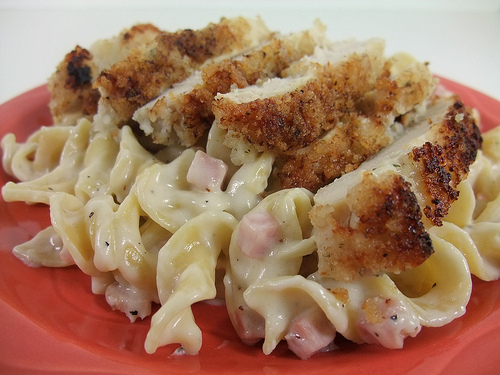 - 2 boneless skinless chicken breasts, pounded to 1/4-inch thickness