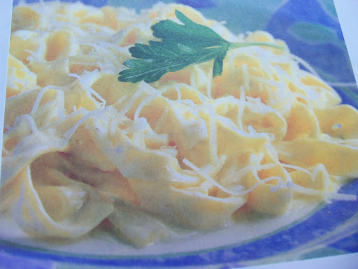 Transfer the fettucine to a warm serving plate and garnish w/ fresh parsley. Serve immediately, sprinkled w/ extra parm cheese.