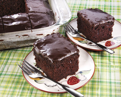 Icing: Using a double boiler or a metal bowl placed over a pot of boiling water, heat the water and oil to boiling (it will not come to a rolling boil, but bubbles will appear). You may also use a heavy-bottomed, medium saucepan, in which the mixture will come to a rolling boil. Remove from heat. Blend in the COCOA and sugar. Beat until smooth. Pour over the cake, spreading the icing to the edges, and let it cool. The frosting may stick to the knife when cutting the cake, so dip the knife in warm water and wipe clean after each cut.