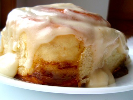 A fluffy, soft, chewy cinnamon roll drizzled with cream cheese frosting -- the best cinnamon rolls ever! This recipe makes a knock-off version of Cinnabon's cinnamon rolls!
