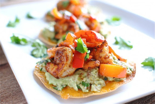 SIMPLE SHRIMP AND GUACAMOLE TOSTADAS