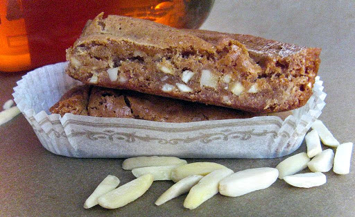 3. Combine flour and baking powder, then stir into the brown sugar mixture. Add vanilla and fold in almonds.