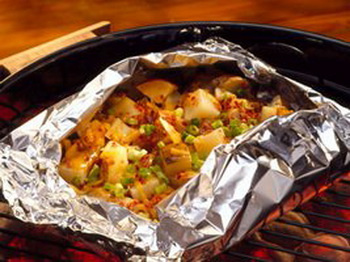 2. Wrap foil securely around potatoes; pierce top ow foil once or twice with fork to vent steam. Cover and grill foil packet, seam side up, 4 to 6 inches from medium heat 45 to 60 minutes or until potatoes are tender. Sprinkle with onions.