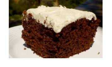 Transfer to greased 13x9-in. baking pan. Sprinkle with chocolate chips. Bake at 325° for 45-50 minutes or until toothpick inserted near the center comes out clean. Cool on wire rack. Dust with confectioners' sugar.