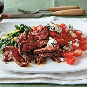 1. Combine first 4 ingredients in a large zip-top plastic bag. Add steak, turning to coat; seal and marinate at room temperature 25 minutes, turning once. Remove steak from bag; discard marinade.
