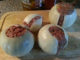 In a bowl, mix together all the remaining ingredients with hands Fill both matching sides of the onion then press them together, wrap them twice in foil and set aside.